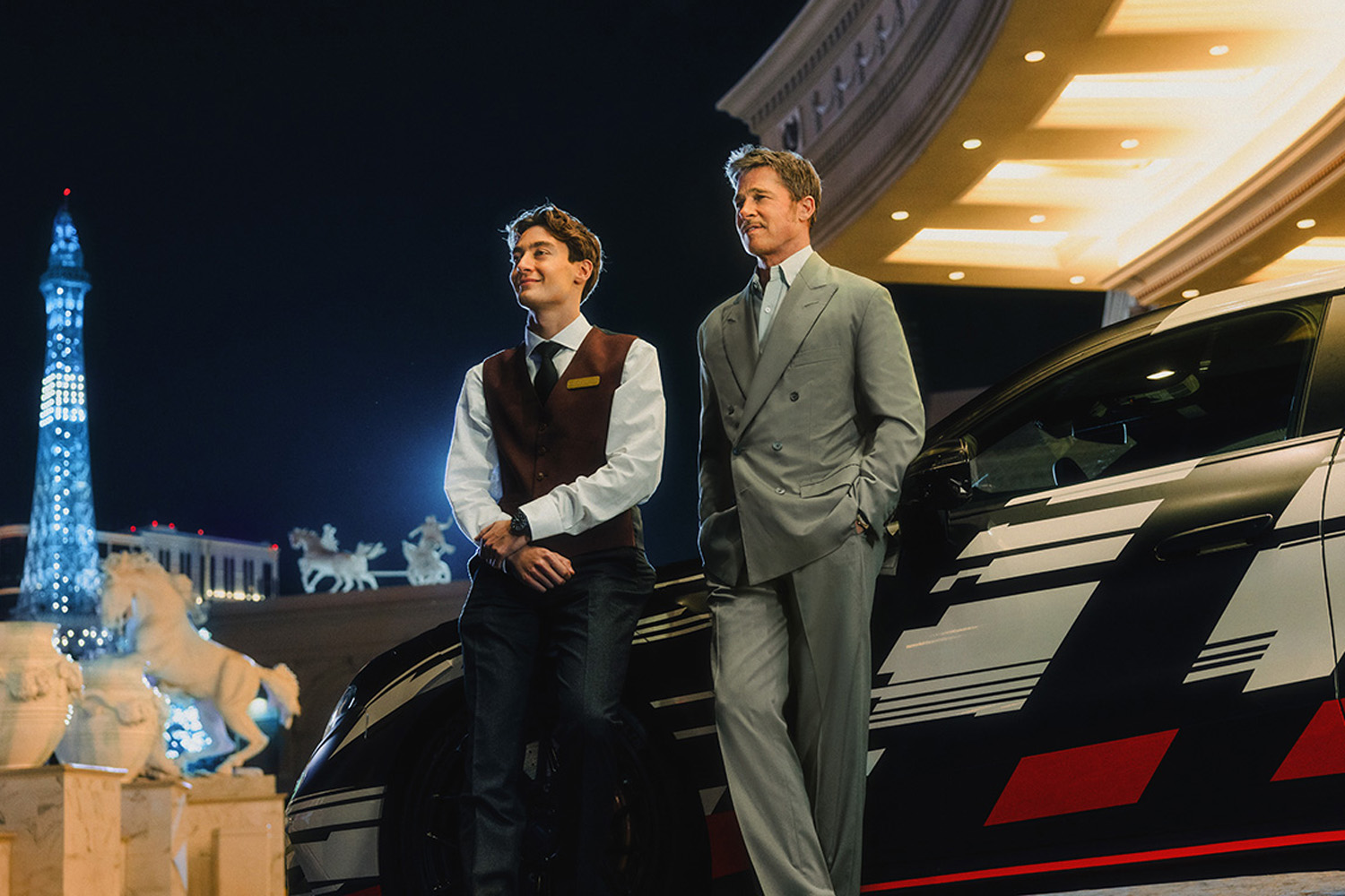 Dans cette mise en scène, Brad Pitt attend sa voiture (un prototype de Mercedes-AMG GT Coupé 4 portes coupé) au service voiturier d'un hôtel de luxe, et découvre que le voiturier n'est autre que le pilote de Formule 1 George Russell. Celui-ci lui dépose son véhicule avec panache, au terme d'une longue séance de drift.