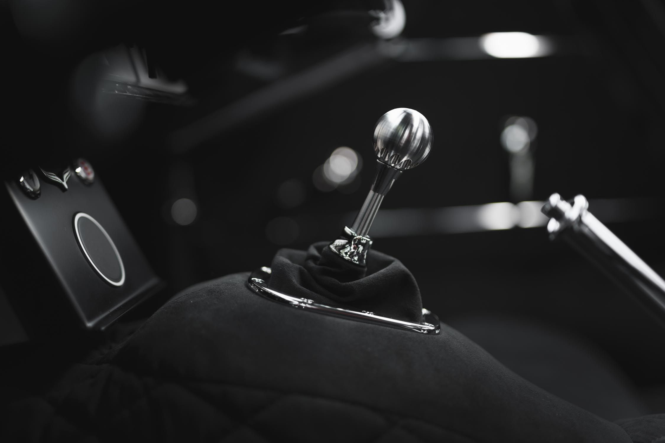 L'habitacle au look épuré rappelant celui d'une voiture de course, s'habille de son côté d'Alcantara, s'équipe de l'air conditionné et d'un pare-brise chauffant, et intègre des détails sur mesure comme des interrupteurs en platine incrustés de nacre.
