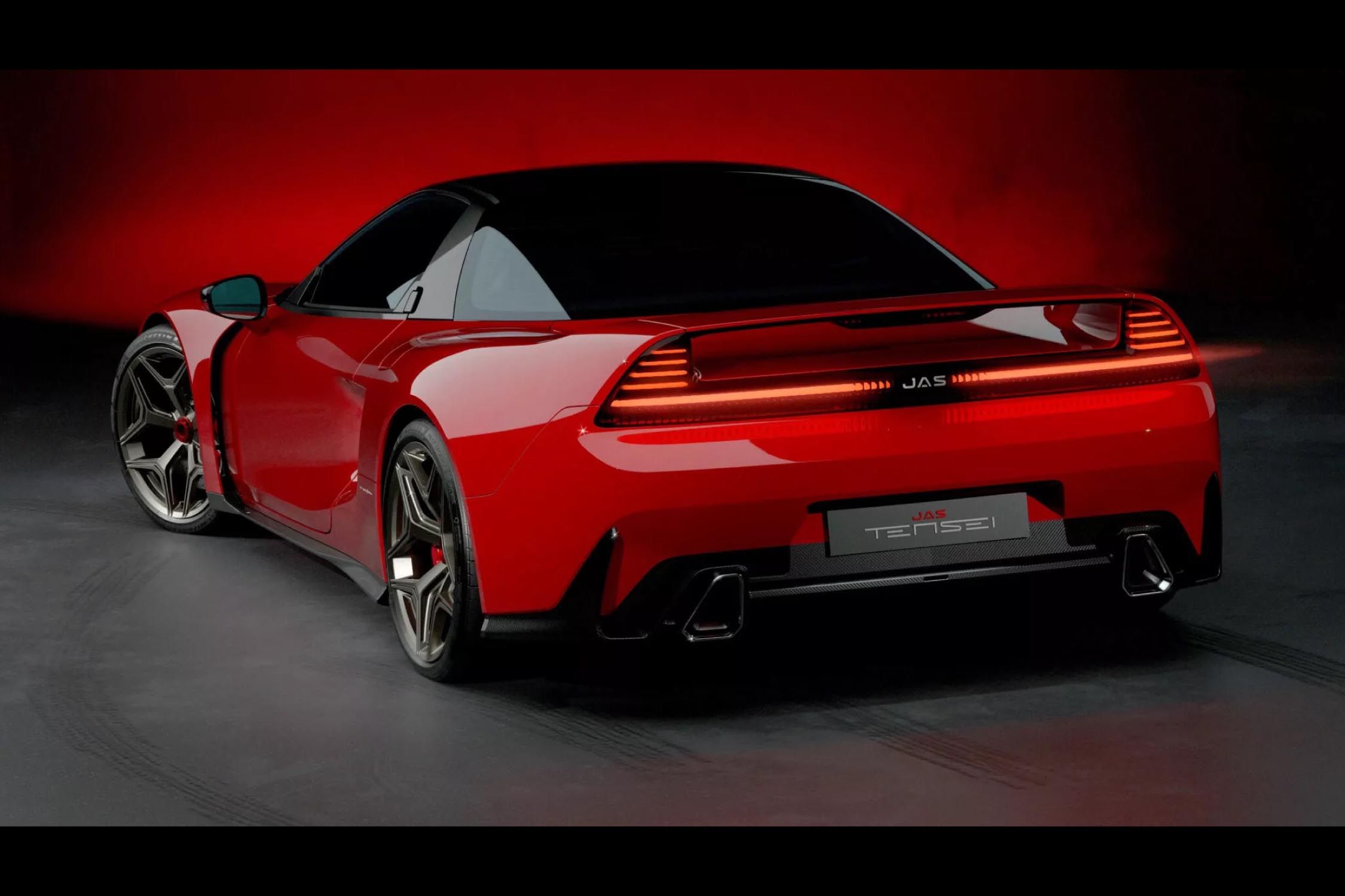 Les deux partenaires n'ont pas encore diffusé d'images de l'habitacle du véhicule, mais on peut voir que la JAS Tensei se distingue de la NSX originale par ses lignes plus fluides et un caractère plus affirmé. Elle reçoit un bouclier avant redessiné intégrant une lame en carbone et une signature lumineuse inédite, de nouvelles jupes latérales, des passages de roues arrière plus large accueillant des ouvertures plus conséquentes pour un meilleur refroidissement, et enfin un large diffuseur arrière en fibre de carbone. Le véhicule repose enfin sur un set de jantes avec fixation par écrou central, abritant des étriers de freins rouges.