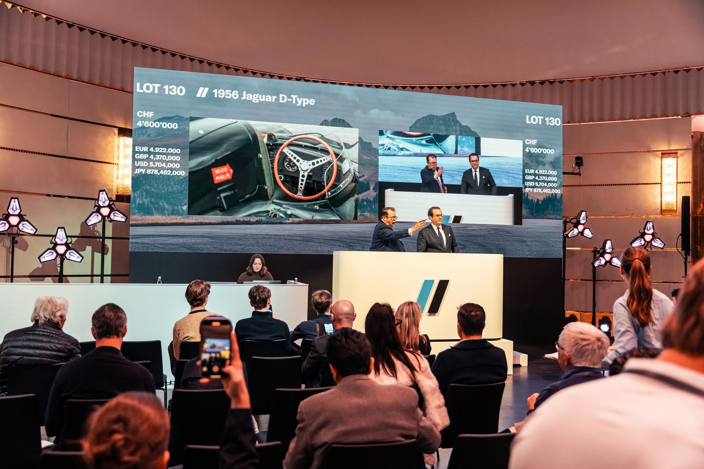 Comme attendu la tête d'affiche de l'évènement, une Jaguar Type D de 1956 (châssis XKD 551), a enregistré la meilleure vente du meeting. Cet exemplaire figurant parmi les 87 châssis produits par Jaguar, n'a jamais participé à une compétition automobile ce qui le rendait d'autant plus convoité par les collectionneurs. Cette Type D éligible aux plus grandes courses de véhicules historiques, a été adjugée 5 181 250 CHF (5 574 714 €).