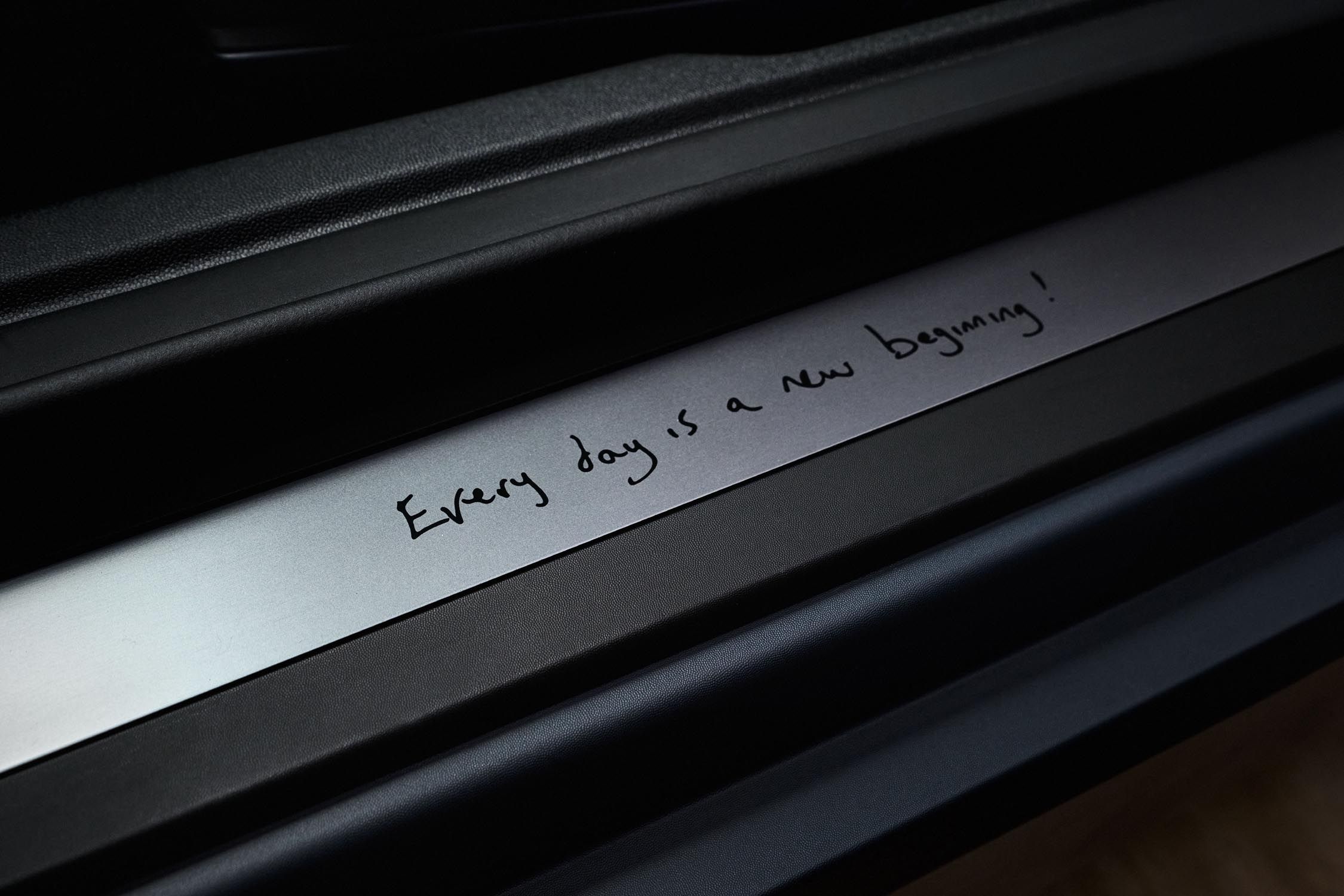 D'autres éléments clés tels que les poignées de porte, les grilles de haut-parleurs, le contour du volant et les porte-gobelets sont finis en « Dark Steel », harmonisant ainsi la palette de couleurs de la nouvelle MINI Paul Smith Edition qui reçoit pour finir des seuils de portes marqués de la devise manuscrite de Smith : « Chaque jour est un nouveau départ ».