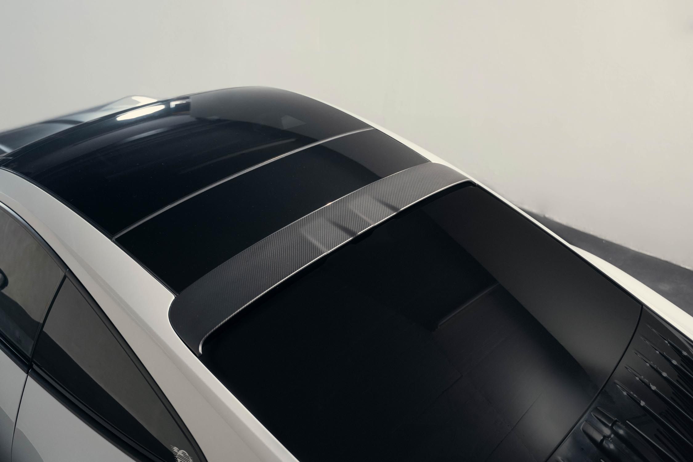 Le becquet arrière type III confère un style sportif intemporel et un appui aérodynamique remarquable, et réduit le poids de 2.39 kg. Avec ce becquet l'aérodynamisme est maintenu à toutes les vitesses. Un becquet de toit en carbone souligne enfin les lignes sportives du véhicule, tandis que les garnitures en fibre de carbone fabriquées à la main (disponibles en finition mate ou brillante) confèrent à l'intérieur élégance et originalité.