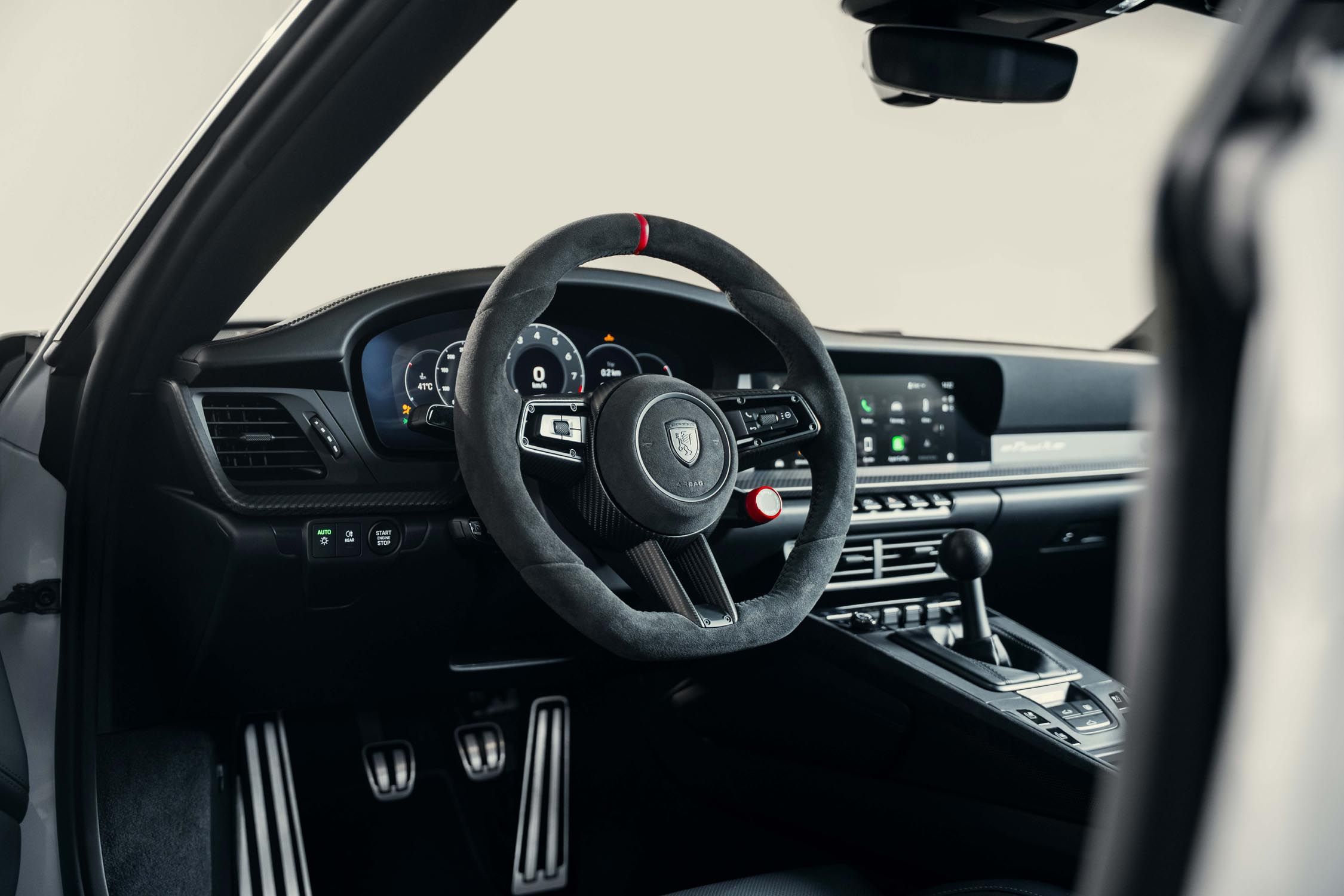 Le concept Tsport R est également transposé sur tous les modèles Carrera équipés de la boîte PDK. Le sélecteur automatique de série est alors remplacé par un levier de vitesses spécialement développé, de style manuel, conférant à la voiture un caractère nouveau.