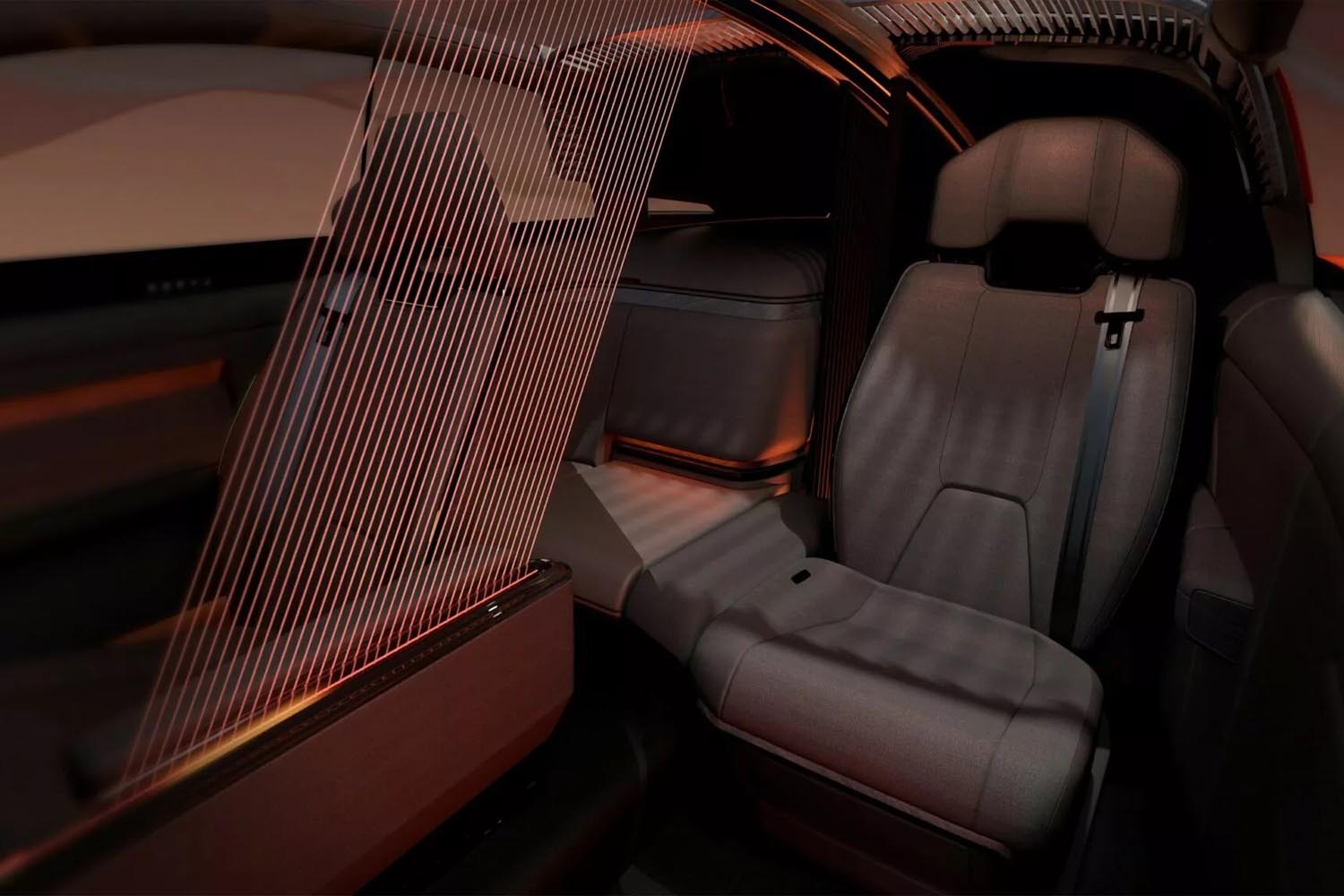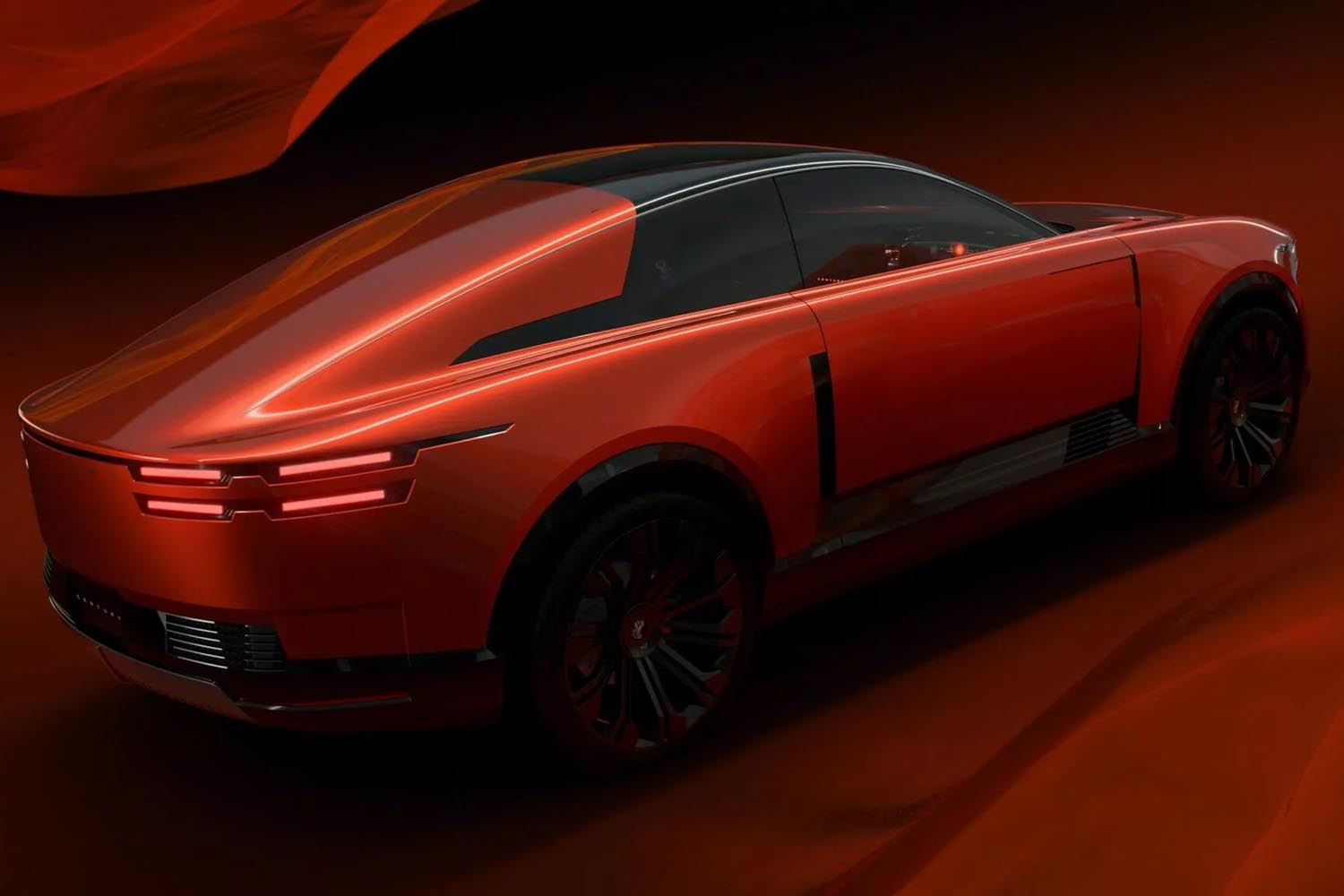 Il se présente avec des lignes inédites marquées par une calandre avant verticale, flanquée de quatre blocs de feux à LED de chaque côté, dispose d'un long capot avant ajouré et repose sur un set de jantes de grand diamètre. A l'arrière, on notera la ligne de toit plongeante qui vient s'arrêter au dessus du bouclier, ainsi que l'absence de lunette arrière.