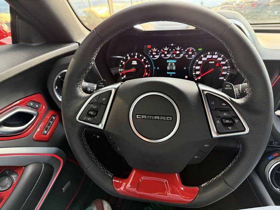 - 8 airbags: frontaux, latéraux, rideaux, genoux conducteur et passager - Accès sans clé et démarrage par bouton-poussoir - Airbag passager déconnectable automatiquement - Alarme antivol avec protection antidémarrage électronique - Becquet arrière couleur carrosserie - Bluetooth (audio streaming et telephone) - Boîte à gants verrouillable - Boîte de vitesses manuelle à 6 rapports avec Active Rev Match - Caméra de recul - Capteur de pluie - Ceintures de sécurité avant trois points avec prétensionneurs - Chevrolet MyLink: navigation 3D, écran tactile haute définition en couleur de 8' avec stéréo AM/FM, 3 ports USB, lecteur SD, port AUX et reconnaissance vocale - Climatisation automatique bi-zone avec réglages séparés pour le passager - Diffusion audionumérique (DAB/DAB /DMB-R) - Essuie-glace avant intermittents - Feux à décharge à haute intensité au xénon, croisement et route - Fonction sécurité piéton avec capot actif - Garniture des sièges cuir - Intégration d'un Smartphone via Apple Car Play et Android Auto - Jantes en aluminium peintes en noir semi-brillant : 20 X 8,5 J à l'avant ; 20 X 9,5 J à l'arrière - Pack Confort et Technologie - Phares avec réglage manuel en hauteur du faisceau - Pommeau de levier de vitesses en cuir - Prises 12 V - Régulateur de vitesse - Rétroviseur intérieur électrochrome - Rétroviseurs extérieurs avec rappel de clignotant - Rétroviseurs extérieurs rabattables manuellement - Remplissage de carburant sans bouchon - Siège conducteur réglable à 8 voies (hauteur, inclinaison de l'assise, réglage avant / arrière et de l'inclinaison du dossier) - Siège passager avant réglable à 6 voies (hauteur, réglage avant / arrière et de l'inclinaison du dossier) - Sièges arrière rabattables - Sièges baquets sport - Sièges conducteur et passager avant chauffants et ventilés - Surtapis en moquette - Système audio BOSE haut de gamme - Son Surround Centerpoint avec 9 hautparleurs et technologie AudioPilot de compensation du bruit - Système d'aide à la marche arrière par ultrasons - Système de recyclage d'air avec filtre à pollen - Système de surveillance de pression des pneus - Système ISOFIX sur sièges arrière - Tableau de bord reconfigurable avec écran couleur 8'' HD - Vitre arrière dégivrante - Vitres électriques à l'avant, à impulsion - Volant cuir avec méplat - Volant multifonctions pour le système audio et les informations de conduite; système de reconnaissance vocale/ 1ère main Française vendu neuve par Chassay