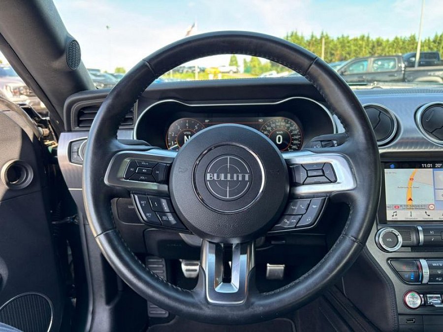 Extérieur : Peinture métallisée Vert Highland / Diffuseur arrière / Double sorties d'échappement / Echappements à clapet / Feux arrière à LED / Feux de jour à LED / Grille de calandre spécifique Bullitt sans pony / Jantes alliage noires Bullitt 19'' 5 branches / Projecteurs Full LED / Badge arrière Bullitt façon bouchon de réservoir / Suspensions sport / Suspension arrière indépendante / Sécurité : ABS avec répartiteur de freinage EBD / Aide au démarrage en côte / Aide au maintien dans la file (LKA) / Aide au stationnement arrière / Airbag genoux conducteur / Airbags frontaux et latéraux avant / Airbags rideaux / Caméra de recul / Contrôle de pression des pneus (TPMS) / ESP AdvanceTrac / Freins performance Brembo avec étriers rouges / Régulateur de vitesse adaptatif / Système de sécurité précollision avec détection des piétons / Confort : Accoudoir central avant / Allumage automatique des essuie-glaces / Allumage automatique des projecteurs / Climatisation automatique bi-zone / Système d'entrée et de démarrage mains libres / Vitres électriques avant à impulsion et fermeture globale / Volant cuir réglable en hauteur et profondeur avec commandes au volant / My Key / Pédalier sport / Plaque numérotée sur tableau de bord / Rétroviseur intérieur électrochrome / Rétroviseurs extérieurs électriques et chauffants couleur carrosserie avec répétiteur de clignotant / Rétroviseurs extérieurs rabattables électriquement / Sellerie cuir spécifique Bullitt avec surpiqure verte / Seuil de portes rétro-éclairés / Eclairage d'ambiance / Eclairage d'entrée / Suspensions MAGNERIDETechnologie et multimédia : Système audio premium B&O Play 1000 Watts avec 12 haut-parleurs / Système GPS, Ford SYNC 3 (avec Bluetooth, commandes vocales avancées, Apple Carplay et Android Auto) / Ecran couleur 8' / 2 prises USB / Info trafic (TMC), Radionumérique DAB / Accès aux points d'intérêt des Guides Michelin / Ordinateur de bord full digital 12'' / Performances : Modes de conduite paramétrables : Normal, Sport, Track et Drift / Différentiel à glissement limité / Malus à prévoir à la charge de l'acheteur de 5460EURÂ