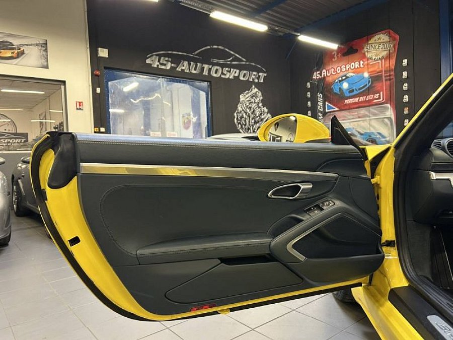 EQUIPEMENTS => Porte gobelet - Aide au stationnement à l'avant et à l'arrière - Bluetooth - Gps tactile avec map - Climatisation manuelle - Sièges chauffants et ventilés - Pommeau de levier de vitesse en cuir - Verrouillage centralisé - Système start / stop - Mode sport - Allume cigare - Fond de compteur noir - Essuie glace automatique - Allumage automatique des feux - Frein à main électrique - Volant en cuir, avec surpiqûre, palettes et chauffant - Tapis de sol porsche - Rétroviseurs électriques et rabattables - Vitres électriques - Panneau de porte & tableau de bord en cuir bleu foncé avec surpiqûre jaune - Capote électrique bleu foncé - Jantes boxster s 19 p -